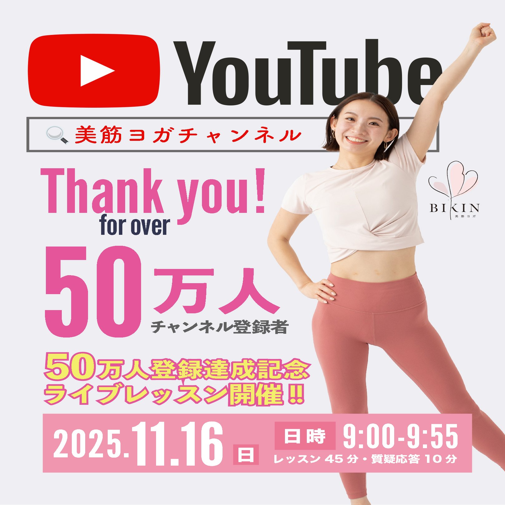 🎉YouTube美筋ヨガチャンネル、登録者50万人を迎えました🌿